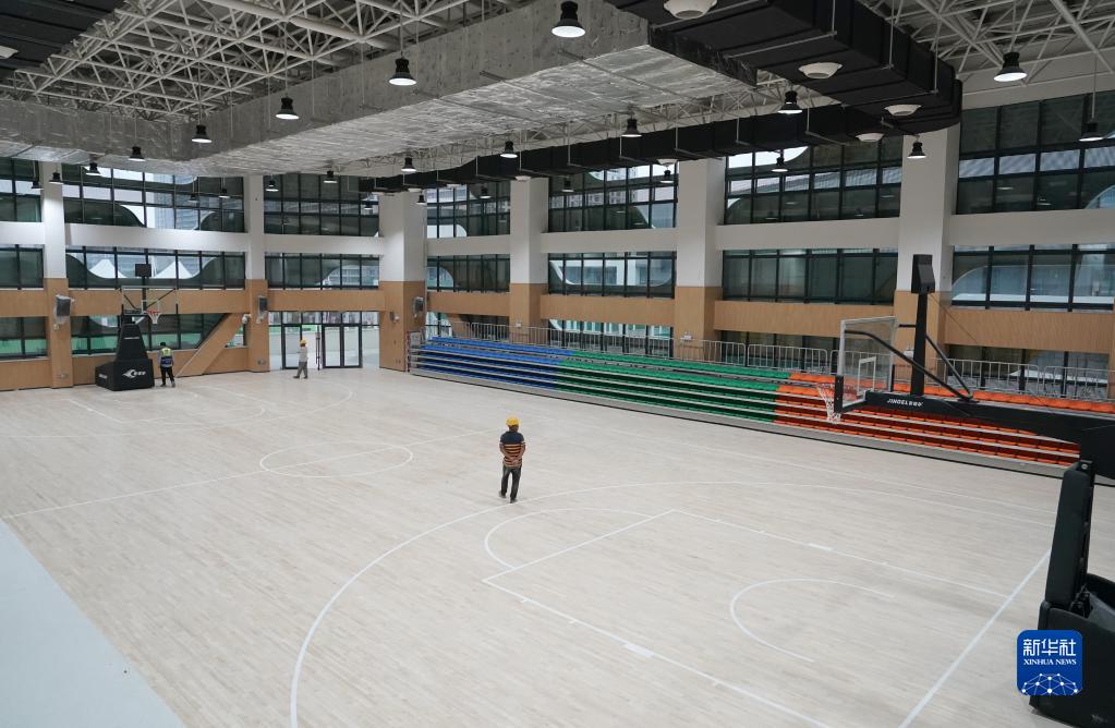 新建成的西安市雁塔區第一小學的室內籃球館(8月25日攝)。