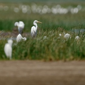 一群白鷺在草叢里歇息(8月25日攝)。