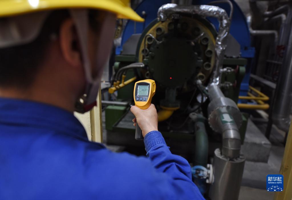 8月25日,國能成都金堂發(fā)電有限公司職工在生產(chǎn)廠區(qū)檢測設(shè)備運轉(zhuǎn)溫度。
