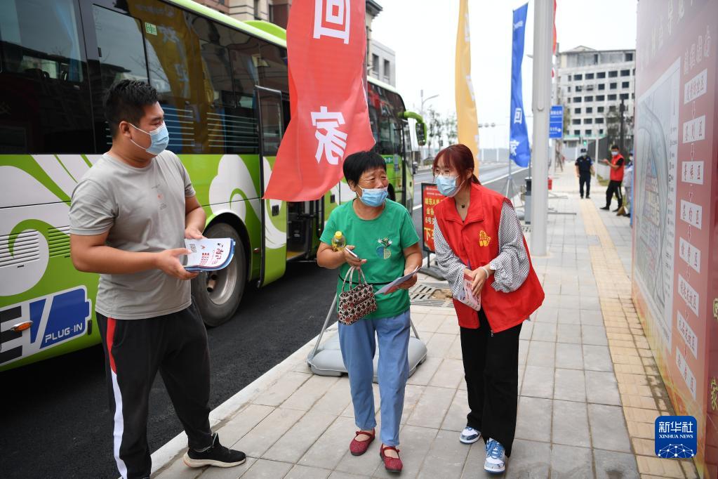 8月26日,回遷居民(中)在雄安新區(qū)雄東片區(qū)A單元安置房交付點向志愿者咨詢交付事宜。