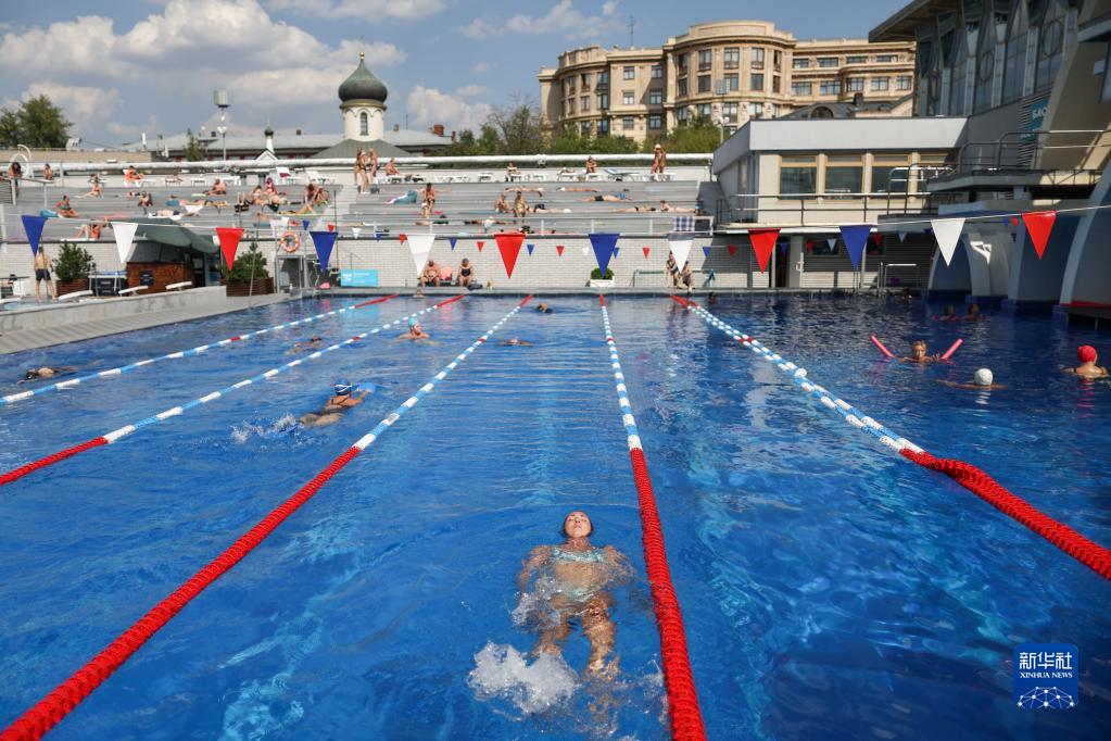 8月25日,人們在俄羅斯莫斯科的露天游泳池游泳。