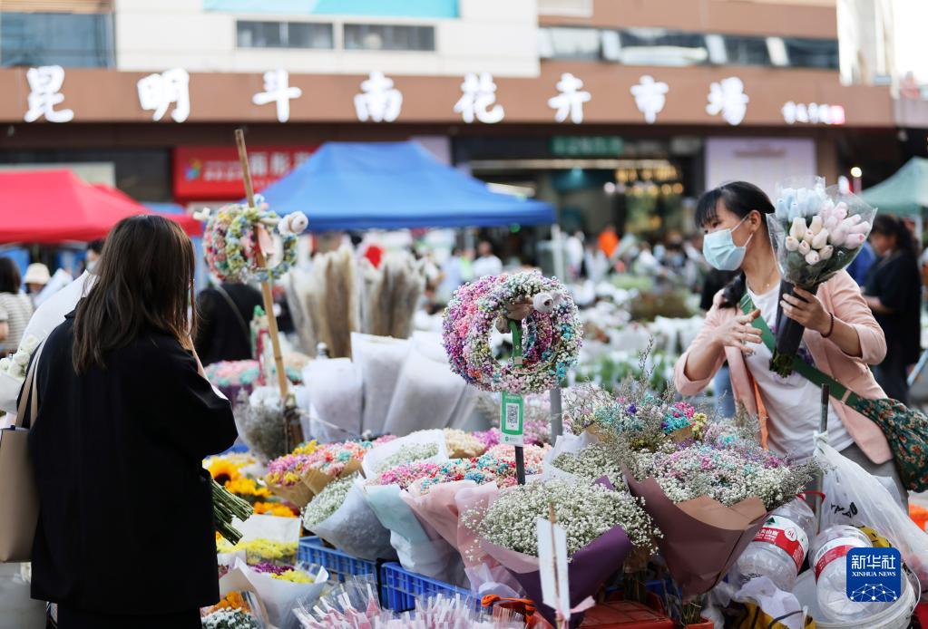 昆明市斗南花市以花卉消費體驗、旅游體驗、文化體驗為特色。日前,斗南花市入選第二批國家級夜間文化和旅游消費集聚區名單,花市采取了加強管理、延長營業時間、增加營業場地等舉措,吸引更多顧客。