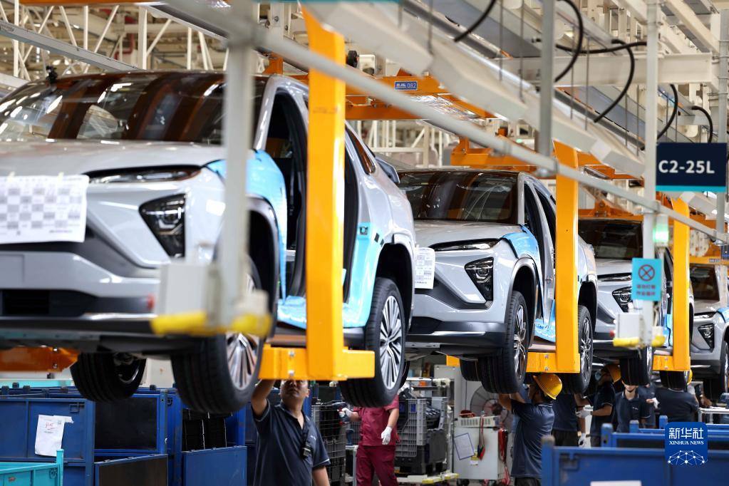 8月28日,在合肥經(jīng)濟(jì)技術(shù)開發(fā)區(qū)的一家新能源汽車生產(chǎn)企業(yè),工人在整車生產(chǎn)線上作業(yè)。
