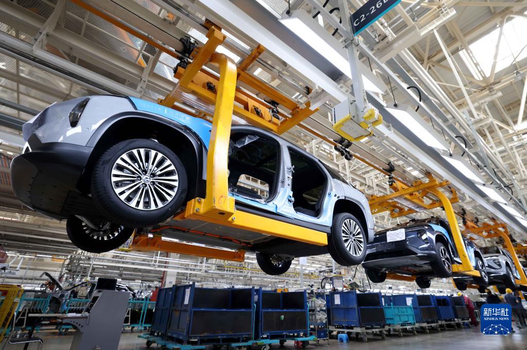 8月28日,在合肥經(jīng)濟技術(shù)開發(fā)區(qū)的一家新能源汽車生產(chǎn)企業(yè),工人在整車生產(chǎn)線上作業(yè)。