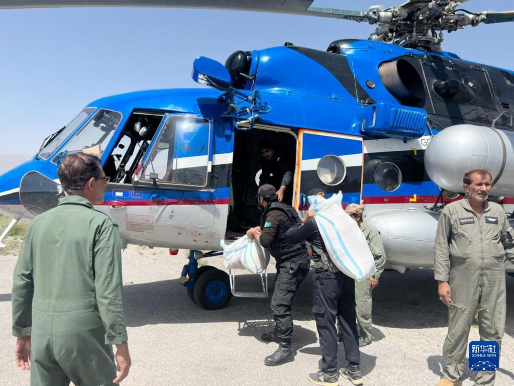8月28日,在巴基斯坦俾路支省賈法拉巴德地區(qū),人們從直升機(jī)上卸下救災(zāi)物資。