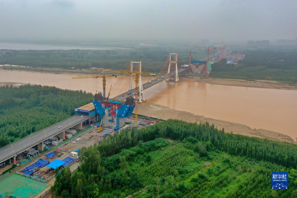 8月30日拍攝的濟(jì)南黃河公路大橋擴(kuò)建工程施工現(xiàn)場(無人機(jī)照片)。