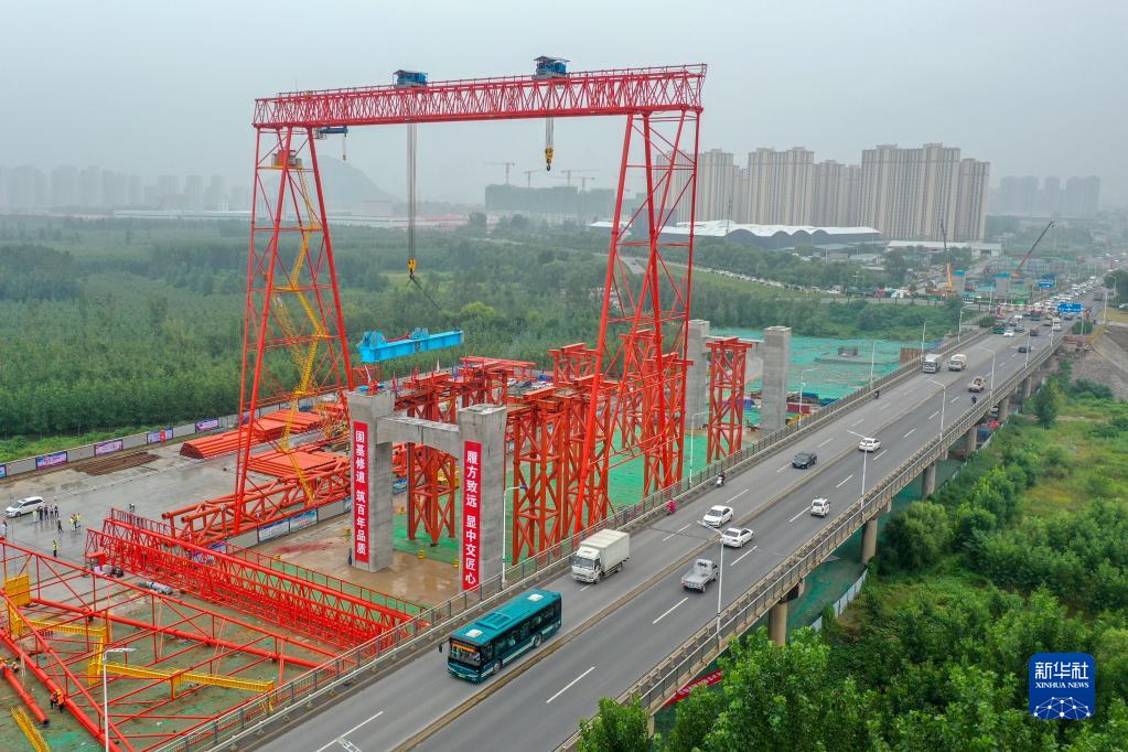 當日,由濟南城市建設集團投資、中交一公局集團負責建設的濟南黃河公路大橋擴建工程南岸首節段鋼桁梁首件開始架設,橋梁進入上部結構施工階段。