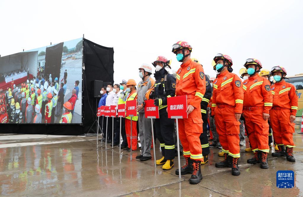 當日,2022年長三角跨區域交通保障應急處置綜合演練在上海G15沈海高速朱橋收費站區域舉行。