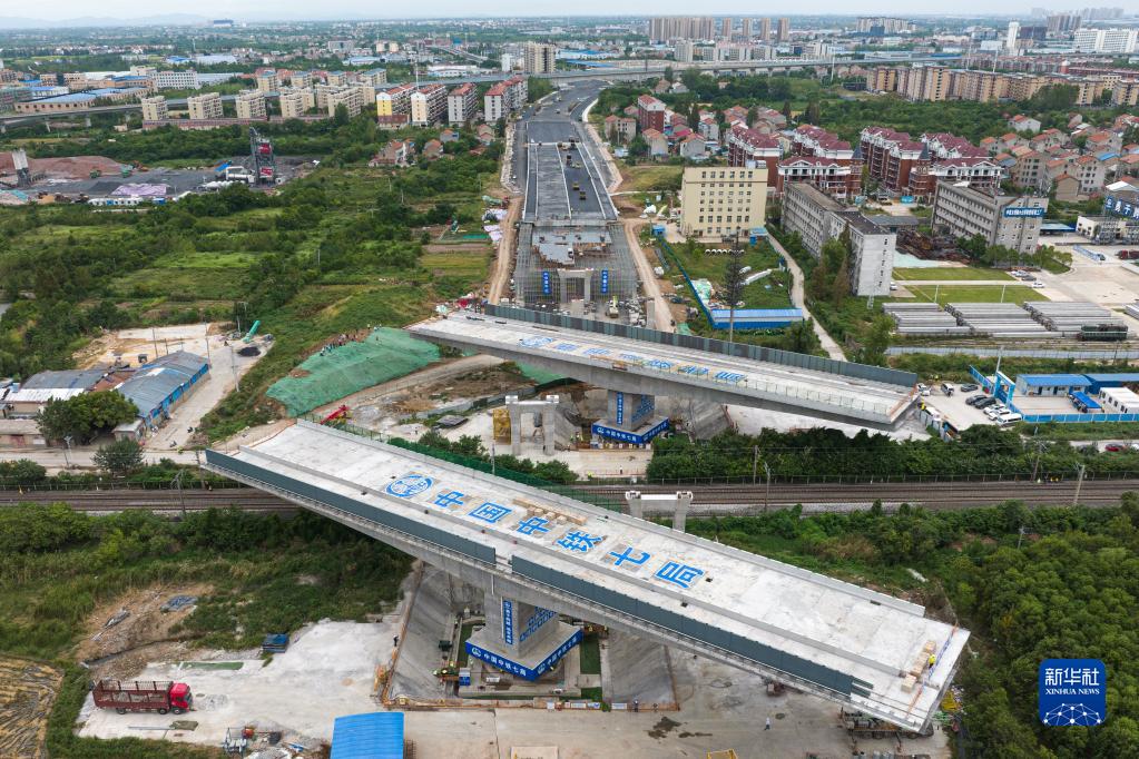 這是8月30日拍攝的湖北孝感兩座萬噸橋梁轉(zhuǎn)體“跨越”京廣鐵路施工場景(無人機照片)。