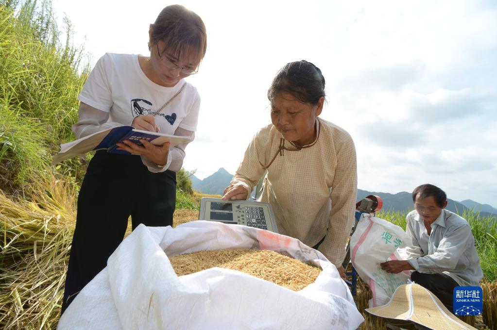 8月30日,農技人員在羅甸縣沫陽鎮紅星村對種植的優質水稻“野香優莉絲”進行測產。