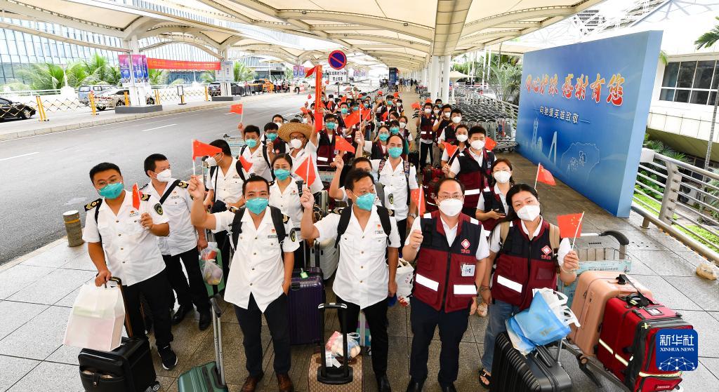 當日,來自上海、安徽、四川的援瓊醫療隊隊員陸續從海南返程。