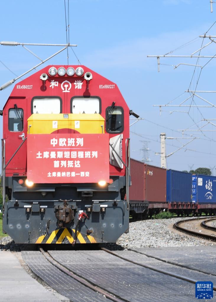 8月31日,滿載土庫曼斯坦甘草中藥材原料的中歐班列回程列車抵達西安國際港站。
