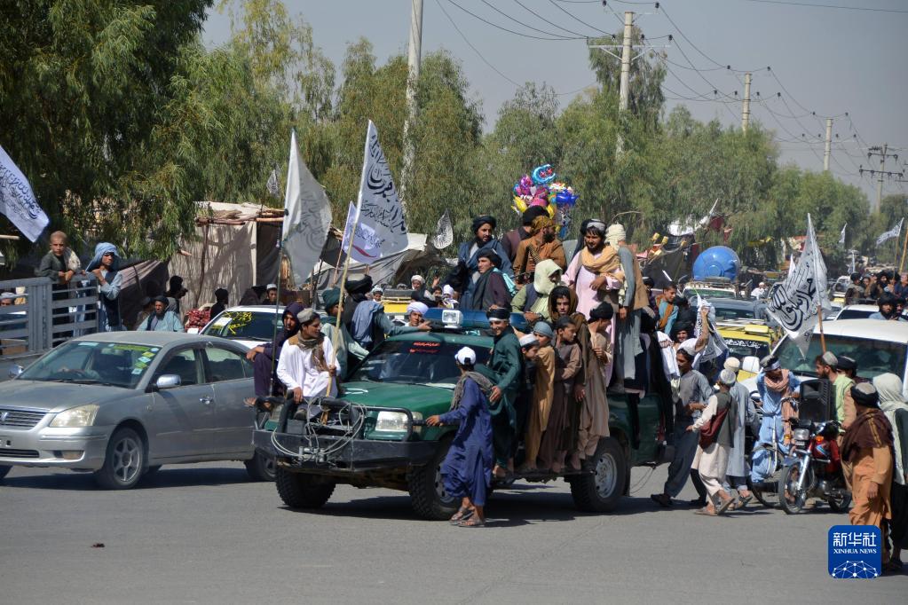 8月31日,時值美軍撤離阿富汗一周年之際,人們走上阿富汗坎大哈省街頭。