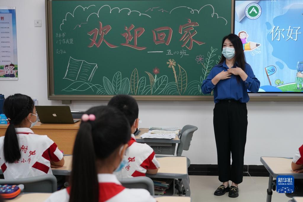 9月1日,在位于北京市海淀區(qū)的人大附中實(shí)驗(yàn)小學(xué),老師為學(xué)生上開(kāi)學(xué)第一課。