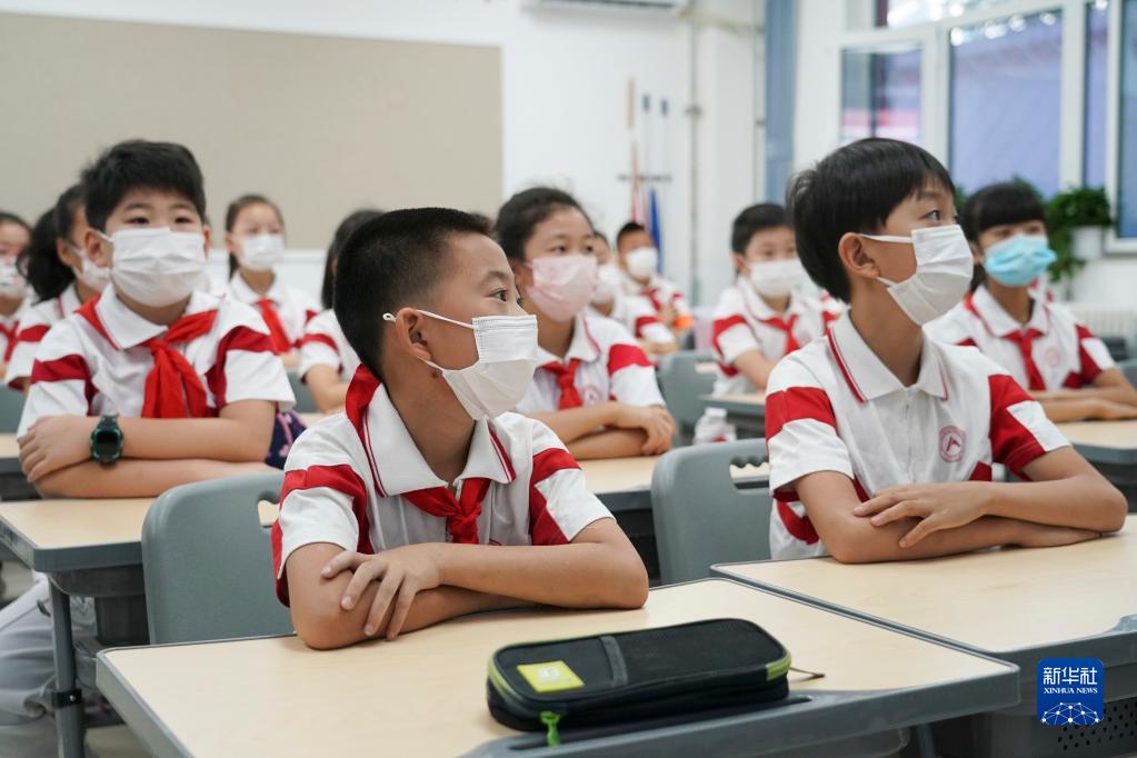 9月1日,在位于北京市海淀區(qū)的人大附中實驗小學,五年級學生上開學第一課。