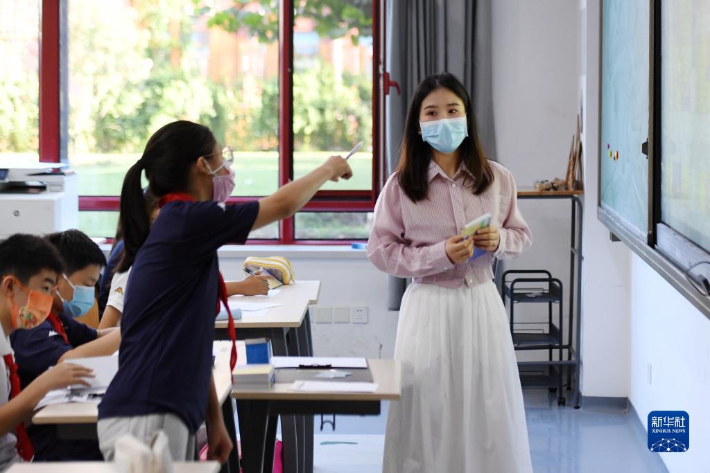 9月1日,在北京十一晉元中學,老師在回答入學新生提出的問題。
