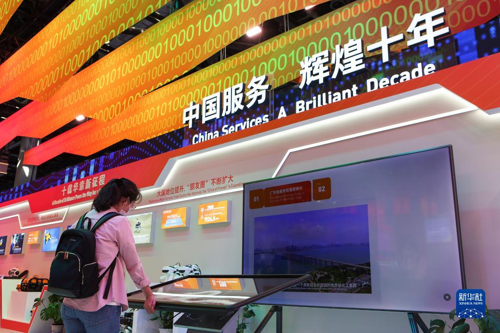 9月1日,觀眾在國家會議中心參觀中國服務(wù)貿(mào)易成就展專區(qū)。
