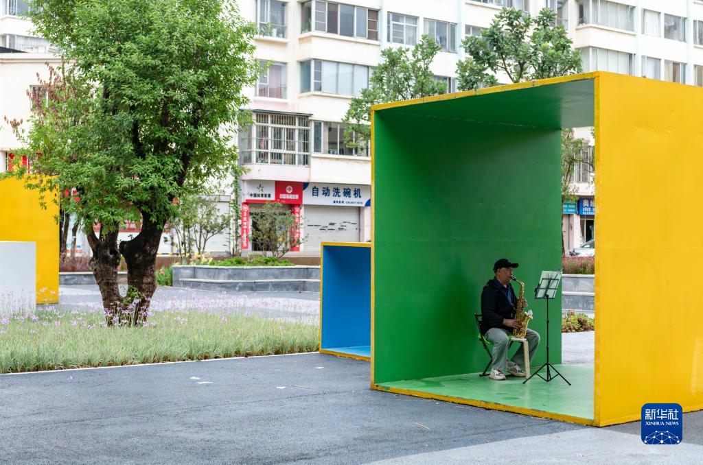 9月1日,市民在昆明廣福小游園內(nèi)吹薩克斯。