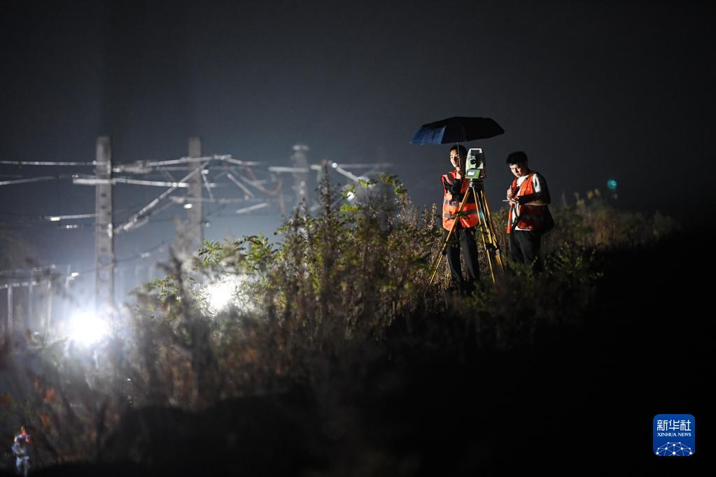 9月1日凌晨,施工人員在重慶鐵路樞紐東環(huán)線磨心坡站作業(yè)。新華社記者 王全超 攝