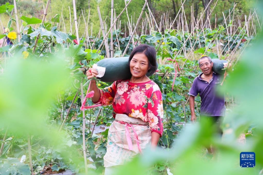 9月1日,湖南省永州市新田縣陶嶺鎮牛塘村村民在采收冬瓜。