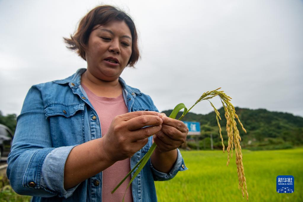 9月1日,在重慶市梁平區蟠龍鎮,種糧大戶高保燕查看水稻成熟情況。