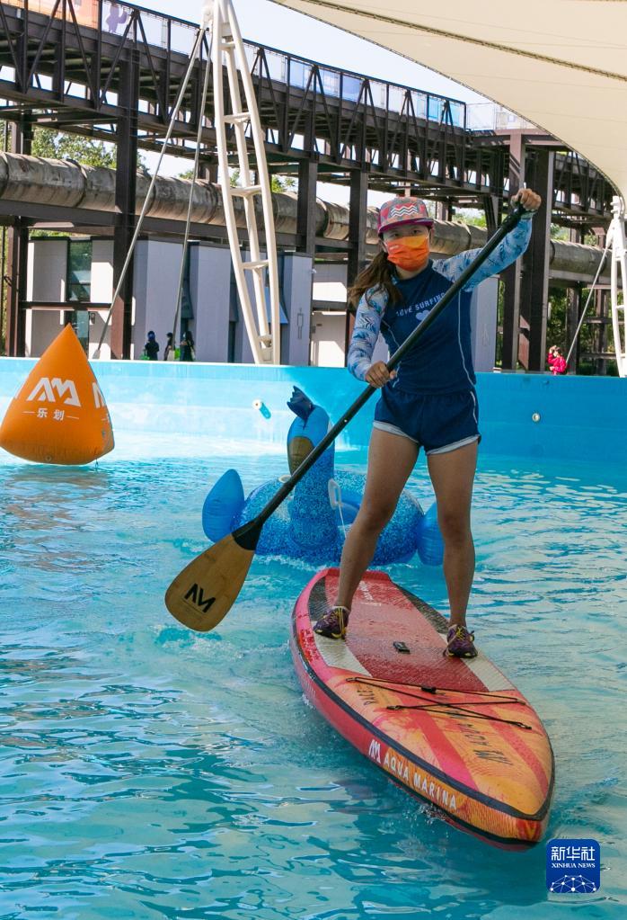 9月1日,一名教練在服貿會體育服務專題展區展示槳板運動。新華社記者 張帆 攝