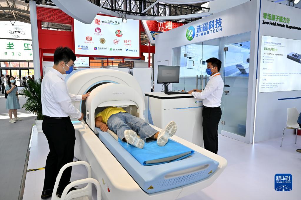 9月2日,觀眾在健康衛生服務專題展區體驗展出設備。