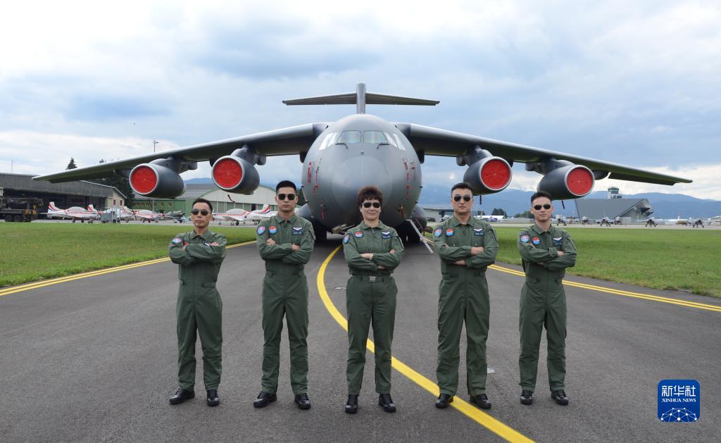 9月1日,在奧地利采爾特韋格機(jī)場,中國空軍運(yùn)-20機(jī)組人員在運(yùn)-20前合影。