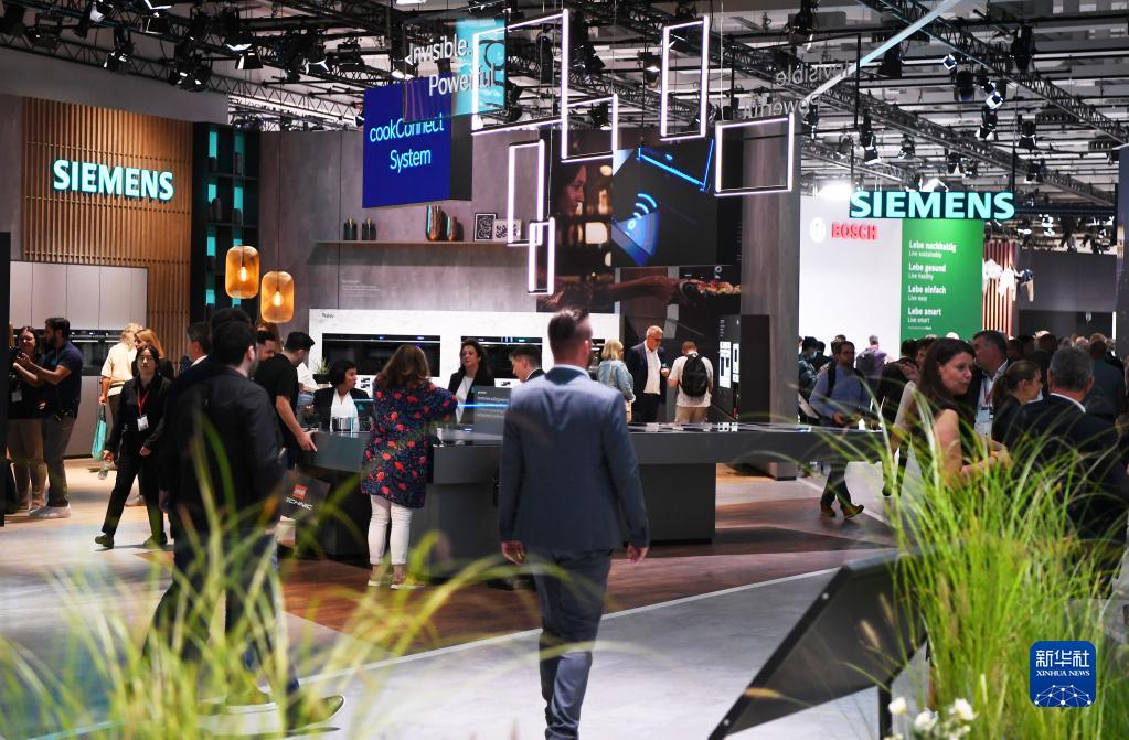 這是9月2日在德國柏林國際消費(fèi)電子展上拍攝的西門子展區(qū)。