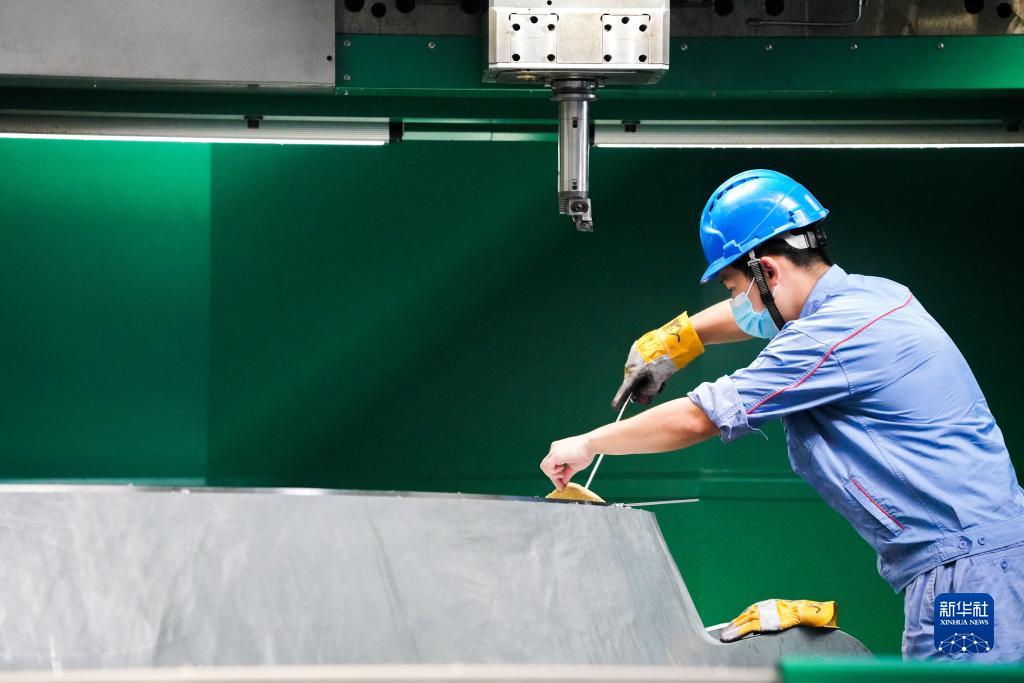 9月3日,在哈電集團哈爾濱電機廠有限責任公司的生產車間,工人在進行生產作業。