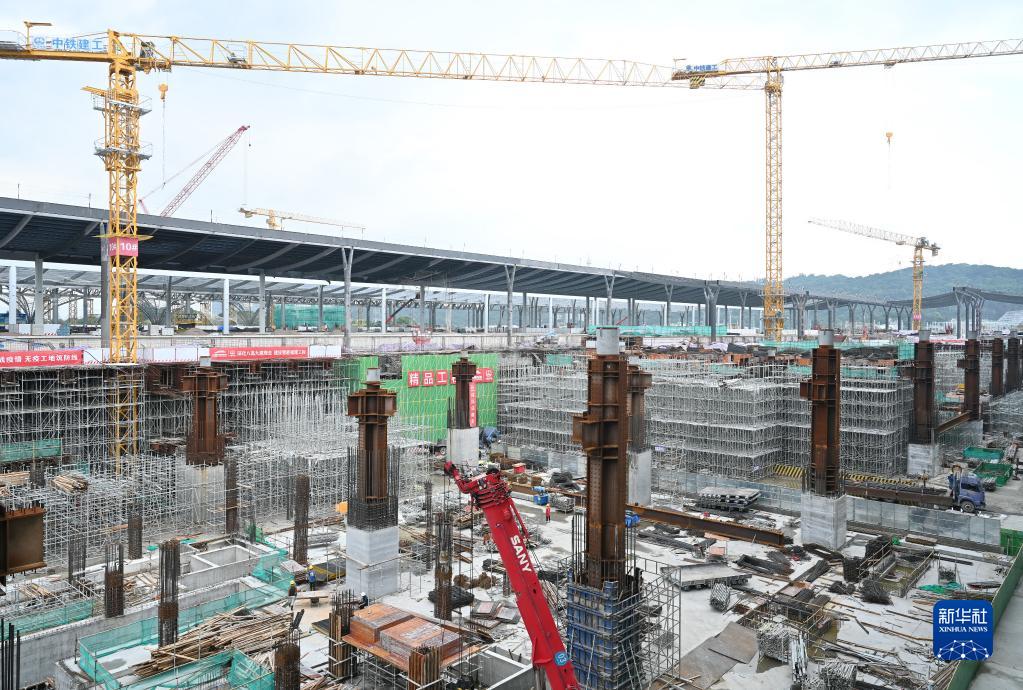 新建福廈鐵路福州南站施工現(xiàn)場(chǎng)(9月1日攝)。