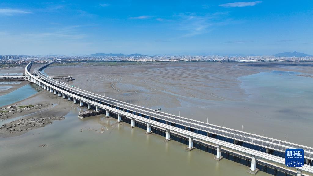 這是9月2日拍攝的新建福廈鐵路泉州灣跨海大橋(無人機照片)。
