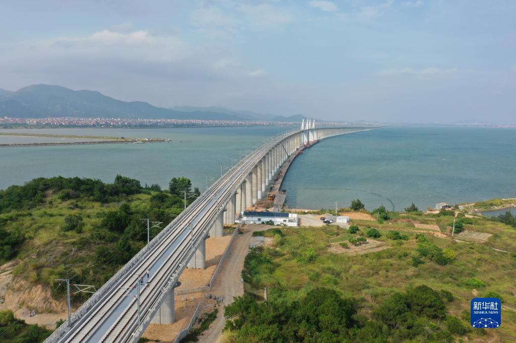 新建福廈鐵路湄洲灣跨海大橋(9月1日攝,無人機(jī)照片)。