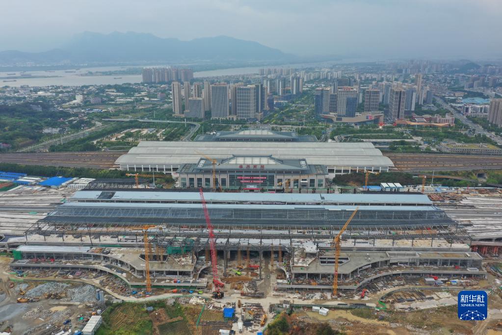 新建福廈鐵路福州南站施工現場(9月1日攝,無人機照片)。