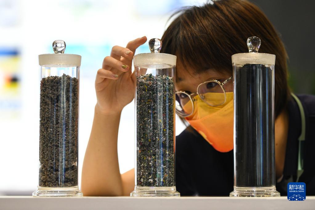 9月3日,在環境服務專題展區,觀眾在參觀固體回收燃料。