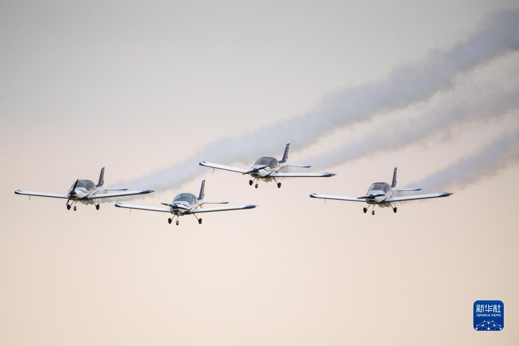 9月1日,在湖南株洲蘆淞機場,飛行員進行固定翼編隊飛行表演。當日,2022湖南(國際)通用航空產業博覽會開幕。