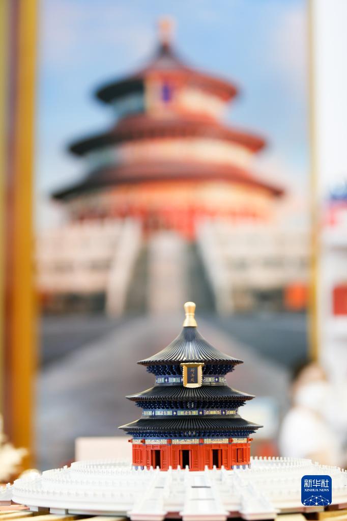 9月1日在2022年中國國際服務貿易交易會文旅服務專題展區拍攝的天壇祈年殿模型。