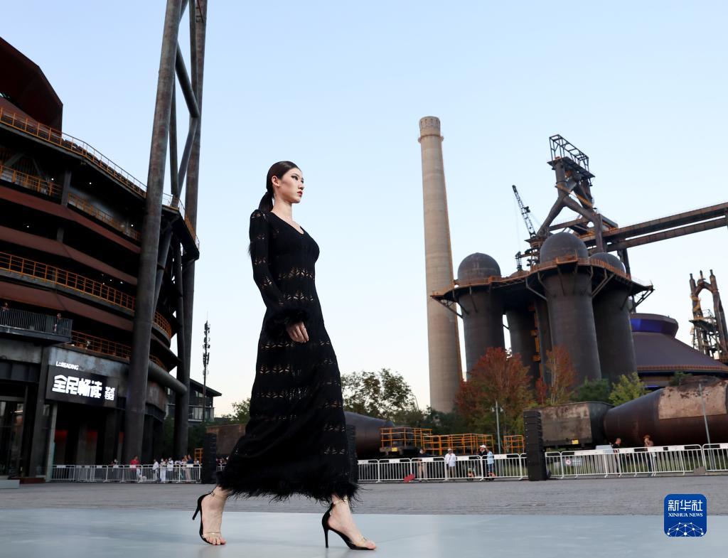 9月1日,模特在北京首鋼園展示知名時裝設計師房瑩設計的時裝。當日,作為2022年中國國際服務貿易交易會內容之一的“雪蓮·房瑩高級定制大秀”在北京首鋼園三高爐南廣場舉行。