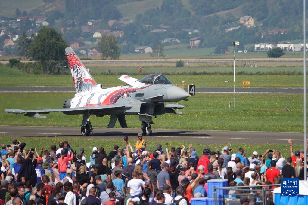 這是9月3日在奧地利采爾特韋格機(jī)場舉行的“空中力量-2022”航展上拍攝的“臺風(fēng)”戰(zhàn)機(jī)。
