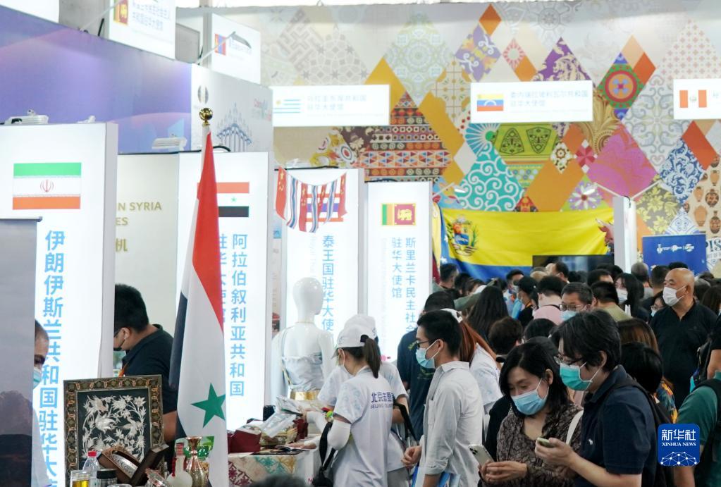 9月3日,參觀者在服貿(mào)會首鋼園區(qū)文旅服務(wù)專題展的“一帶一路”沿線國家特色文化展示活動上參觀。