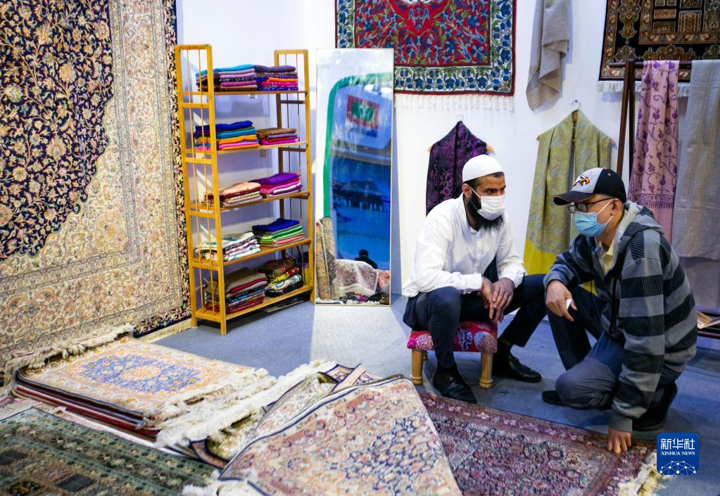 9月3日,參展商和參觀者在服貿會國家會議中心展館國別展區巴基斯坦展臺洽談業務。