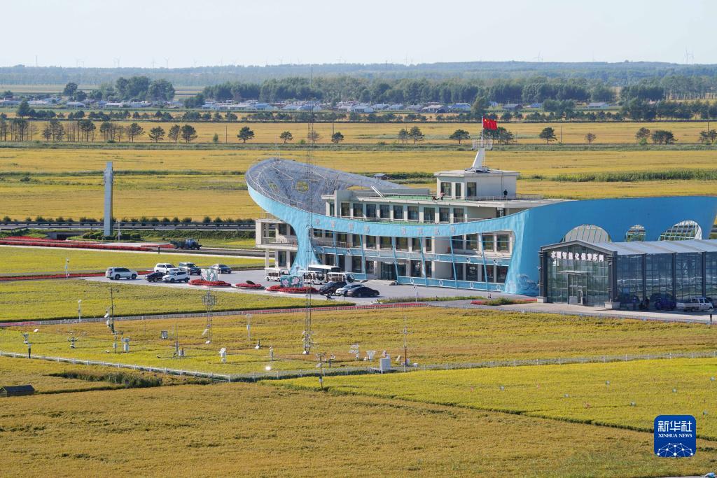 這是9月2日拍攝的位于富錦市萬畝水稻科技示范園內的富錦市現代農業信息服務中心。