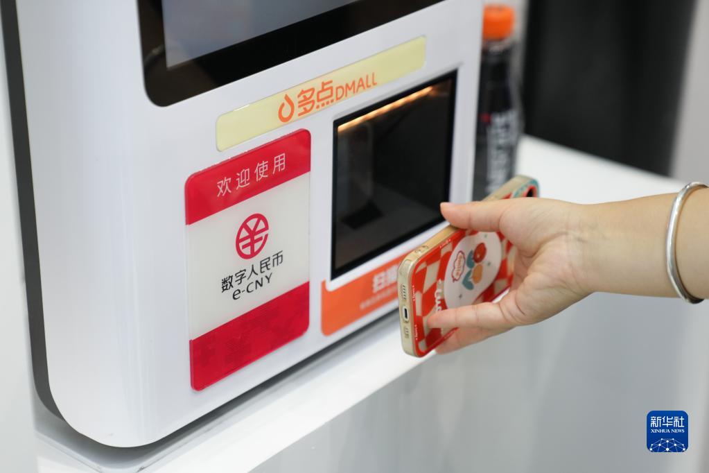 9月3日,參觀者在服貿會首鋼園區金融服務專題展體驗數字人民幣支付購物。 新華社記者 鞠煥宗 攝