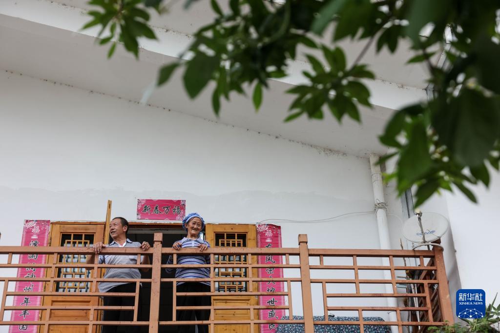 2022年7月19日,76歲的黃小妹(右)與老伴在自家陽臺上休息。黃小妹家于2016年7月搬離天眼核心區遷至克度鎮馬鞍社區。