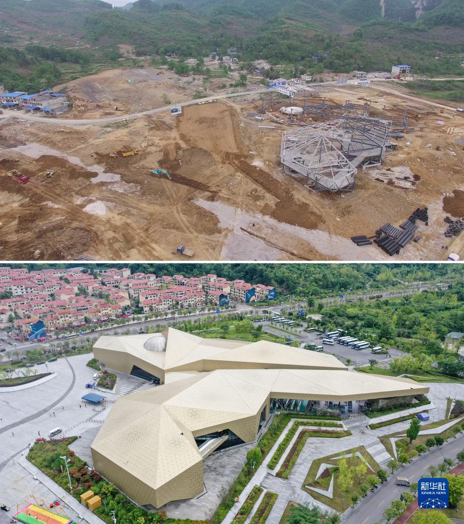 上圖為2015年5月7日拍攝的天文體驗館建設現場;下圖為2022年7月19日拍攝的天文體驗館(無人機照片)。