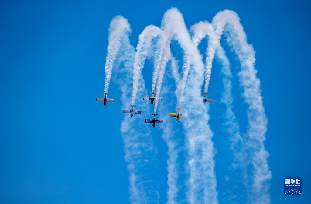 這是9月4日在南非約翰內斯堡拍攝的蘭德航展上的飛行表演。