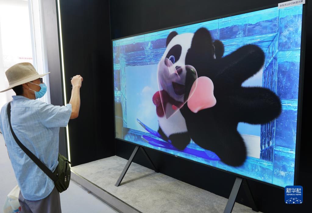 9月4日,觀眾在服貿會首鋼園區的文旅服務專題展區感受京東方8K裸眼3D屏幕。