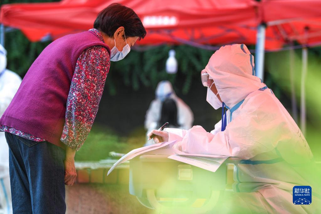 9月5日,醫(yī)護(hù)人員在貴陽市云巖區(qū)大營路街道中天花園社區(qū)為市民做核酸檢測信息登記。