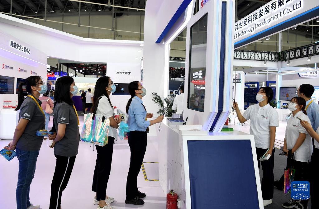 9月5日,參展人員在2022年國家網絡安全宣傳周網絡安全博覽會上進行“三防”科普互動。