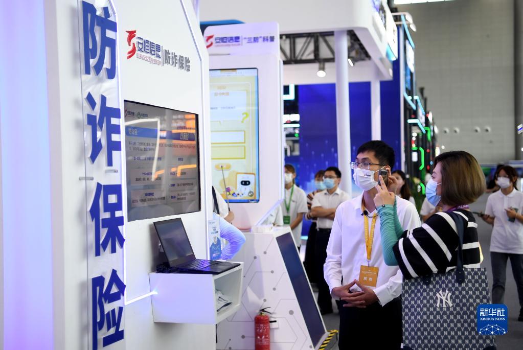 9月5日,參展人員在2022年國家網絡安全宣傳周網絡安全博覽會上介紹防詐保險。